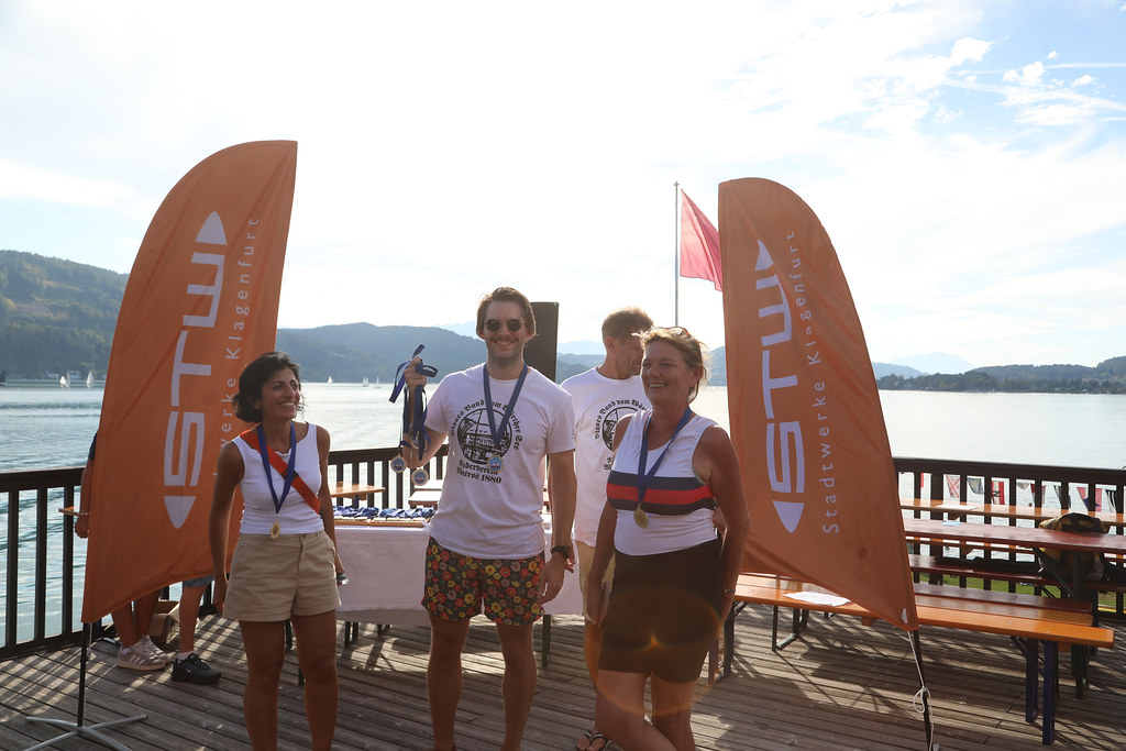 Die Regatta wurde bei strahlendem Wetter im wunderschönen Kärnten bravourös von beiden Booten gemeistert. Neben der sportlichen Herausforderung werden uns allen aber vor allem die Erfahrung des Zusammenhalts, des gegenseitigen Unterstützens und Aushelfens in Erinnerung bleiben. Mastersport an der Alten Donau funktioniert eben am besten, wenn alle zusammenhelfen. Gemeinsam!
