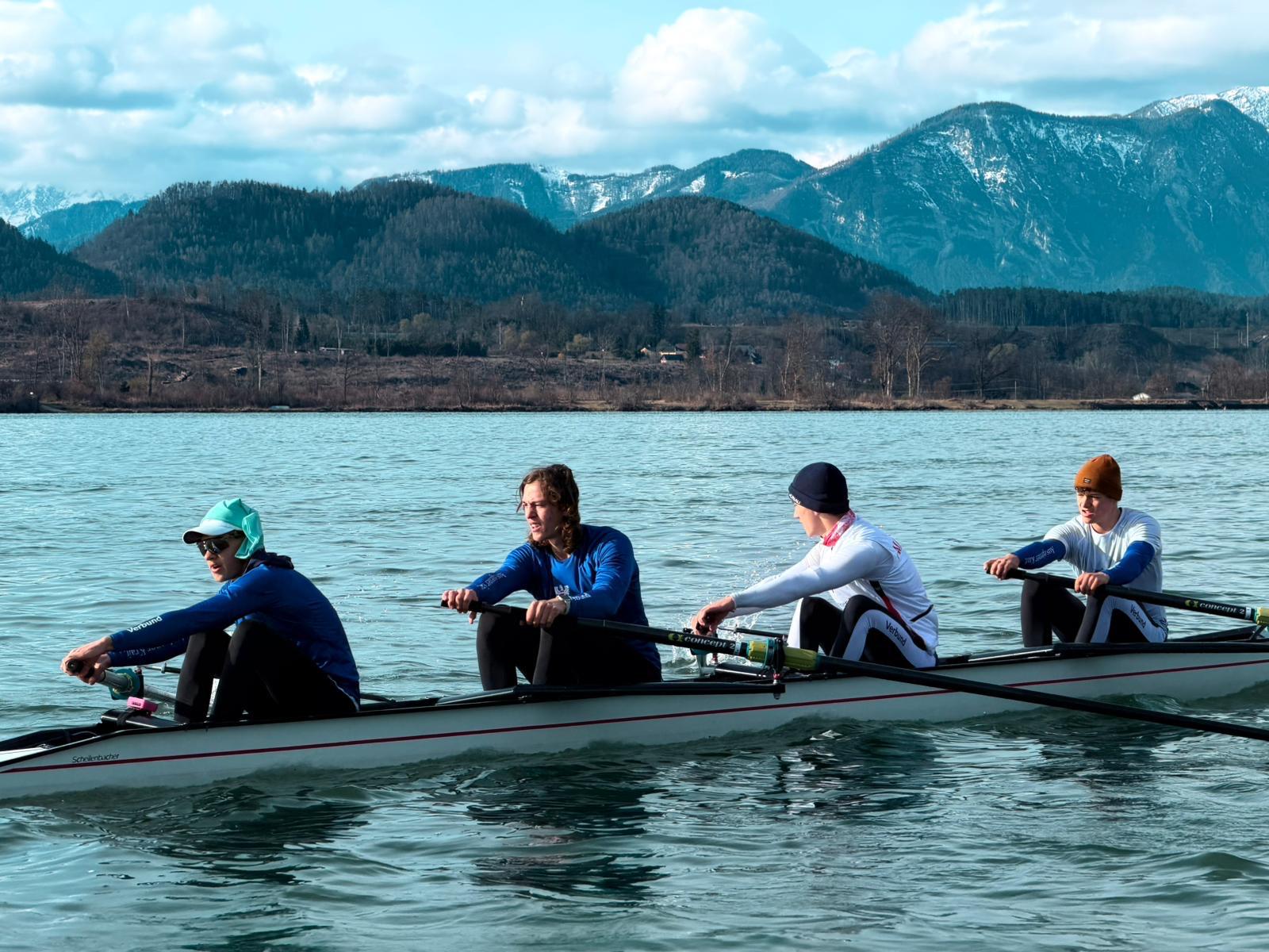 Untergebraucht und toll umsorgt von Gourmet Caterer Markus Tomasin und Veronika vom Adfontes waren wir im Adfontes und im freundlichen Hotel Turnersee untergebracht. Woche 1 war sehr kalt, besonders in der Früh während in Woche 2 die Kärntner Sonne hervorkam und es bei frühlingshaften Temperaturen noch mehr Spaß machte. 1000e Kilometer wurden gerudert, Mannschaftskombis vereinsintern, mit Renngemeinschaften und für ÖRV Mannschaften ausprobiert und trainiert. Die Stimmung war ausgezeichnet und es ging extrem viel weiter!